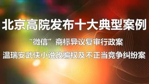 2017年4月20日,北京市高級人民法院發布2016年司法保護十大典型案例,由集佳團隊代理的“微信”商標異議復審行政案、溫瑞安武俠小說改編權及不正當競爭糾紛案雙雙入選。北京高院每年的十大典型案例都以其較強的典型意義及較大的社會影響而備受關注,集佳代理的案件能夠在眾多案件中脫穎而出,并且喜占兩席,充分展示了集佳訴訟團隊的專業素養和職業水準,案件的勝訴,也為各自所在領域的類似案件提供了可資借鑒的維權范本...