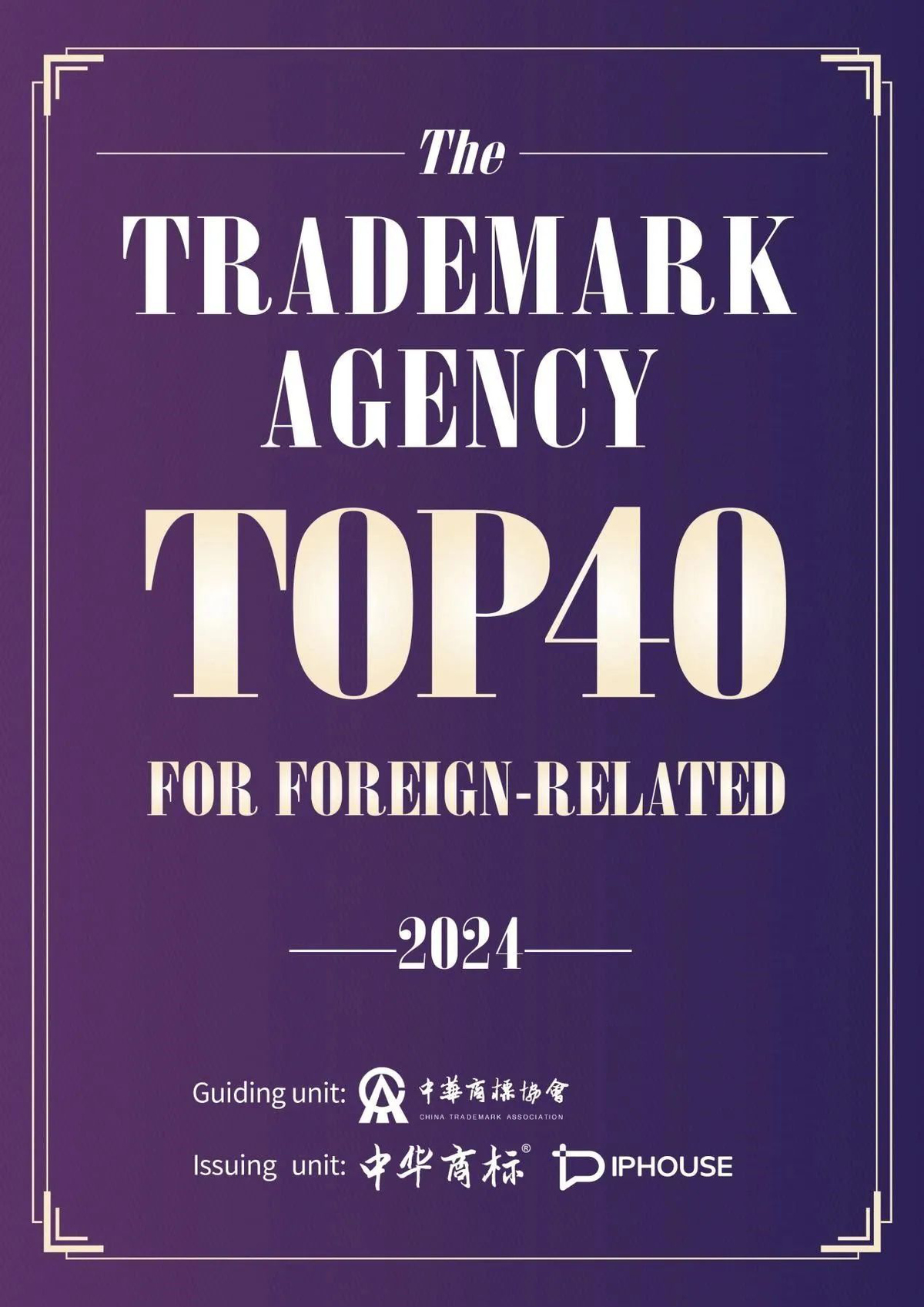 On May 20, 2024, the China Trademark Association Forum of the 146th International Trademark Association (INTA) Annual Meeting hosted in Atlanta, the United States, released the "TRADEMARK AGENCY TOP 40 FOR FOREIGN-RELATED". The list was jointly released by the China Trademark magazine and IPHOUSE under the guidance of China Trademark Association. By virtue of its outstanding performance, Unitalen was selected into the TOP 40 list with honor!