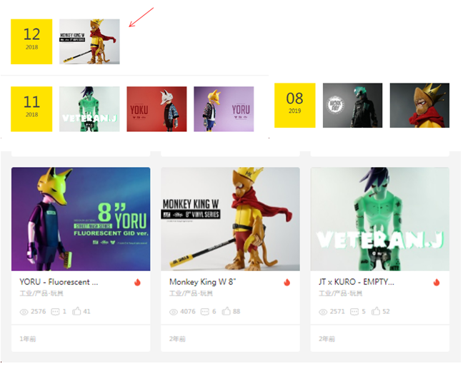異議人隨案提供了站酷ZCOOL網(wǎng)站中關(guān)于異議人作品創(chuàng)作歷程的打印件,顯示著作權(quán)作品形象發(fā)表在2018年12月,并且該系列作品經(jīng)過(guò)宣傳和發(fā)表,獲得了一定的曝光度和知名度。