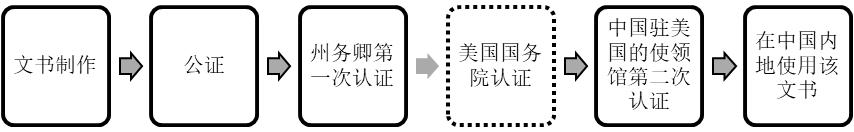 以在美國某個州制作的文書要在中國內地使用為例【4】: