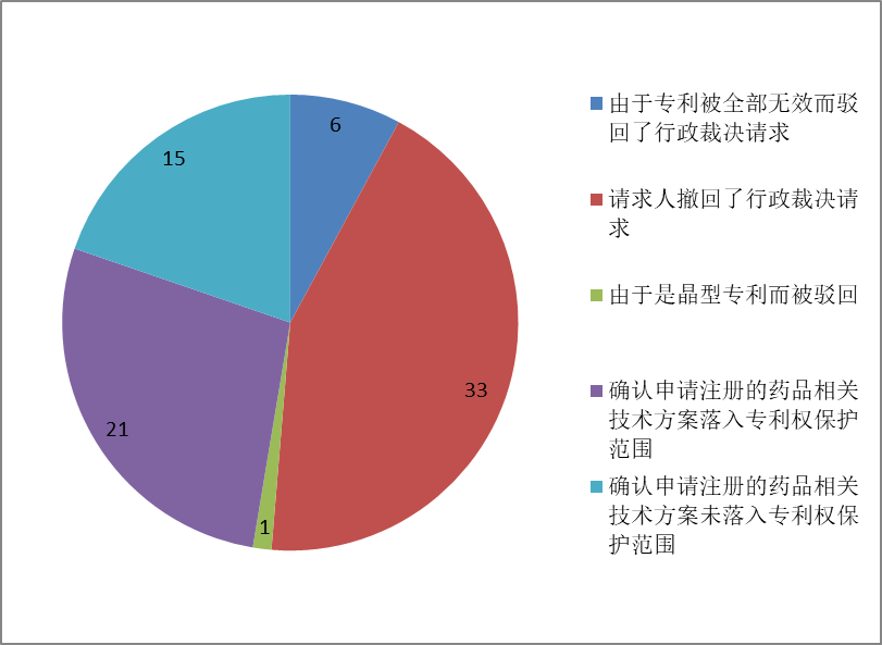這里統計的僅是做出了確認申請注冊的藥品相關技術方案是否落入專利權保護范圍結論的裁決,其他案件無法統計。