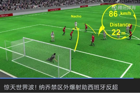 而對于沒有取得新媒體版權(quán)的一眾媒體平臺,以騰訊體育為例,筆者發(fā)現(xiàn)其在對世界杯賽事進(jìn)行報道時采用動畫的形式還原精彩片段,并附加更多相關(guān)數(shù)據(jù),已屬變通方式中的優(yōu)選。