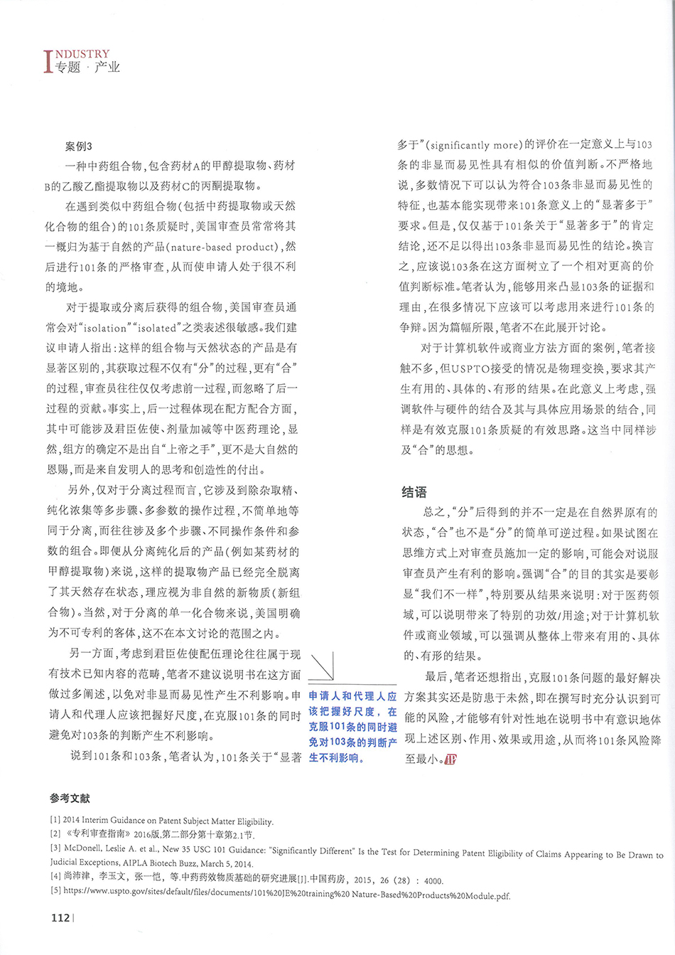 集佳文章《談?wù)勧槍?duì)美國(guó)專利法第101條質(zhì)疑的一種答復(fù)思路》在《中國(guó)知識(shí)產(chǎn)權(quán)》發(fā)表