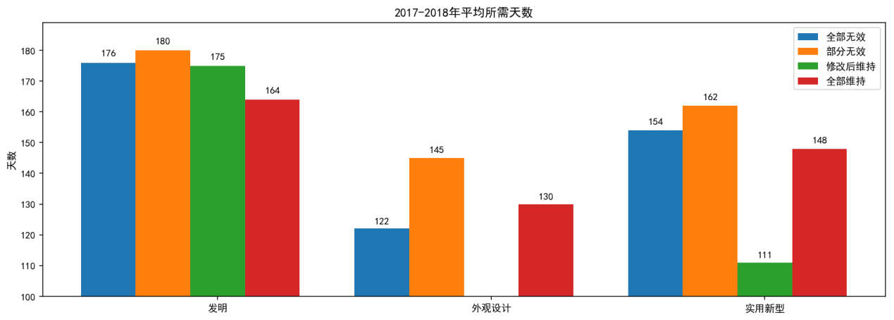 上圖為2008-2018年度無(wú)效請(qǐng)求作出決定平均所用天數(shù)。從上圖可以看出: