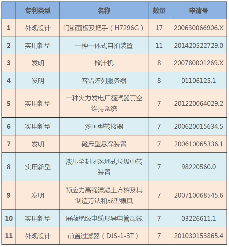 專利被無(wú)效宣告請(qǐng)求的次數(shù)較多,一般說(shuō)明專利穩(wěn)定性較好(否則會(huì)被輕易無(wú)效)且具有較高價(jià)值(否則不會(huì)被多次請(qǐng)求無(wú)效)。在被無(wú)效宣告請(qǐng)求次數(shù)最多的專利中,與發(fā)明專利相比,實(shí)用新型、外觀設(shè)計(jì)的占比并不少。可見(jiàn),撰寫(xiě)水平高的實(shí)用新型、外觀設(shè)計(jì)專利對(duì)專利權(quán)人的價(jià)值并不小于發(fā)明專利。
