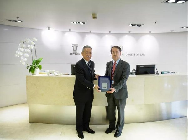 5月21日下午,三菱電機株式會社知識產權中心中心長諏訪裕治先生、三菱電機株式會社知識產權中心手島悠太先生、三菱電機(中國)有限公司知識產權室室長伊達研郎先生、三菱電機(中國)有限公司知識產權室馮文先生一行四人專程來訪,感謝集佳和北京集慧智佳知識產權管理咨詢股份有限公司在過去的一年中對于三菱電機株式會社在中國的知識產權活動做出了杰出貢獻,并向集佳和集慧智佳進行表彰,頒發(fā)了表彰盾。據悉,集佳和集慧智佳是2018年度獲三菱電機株式會社表彰的唯二中國知識產權服務機構。