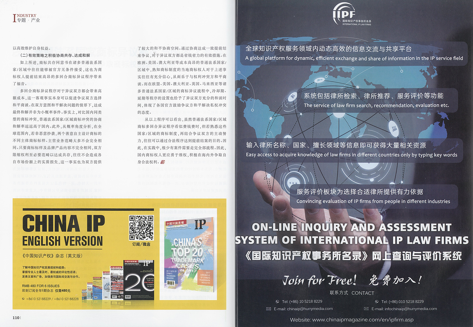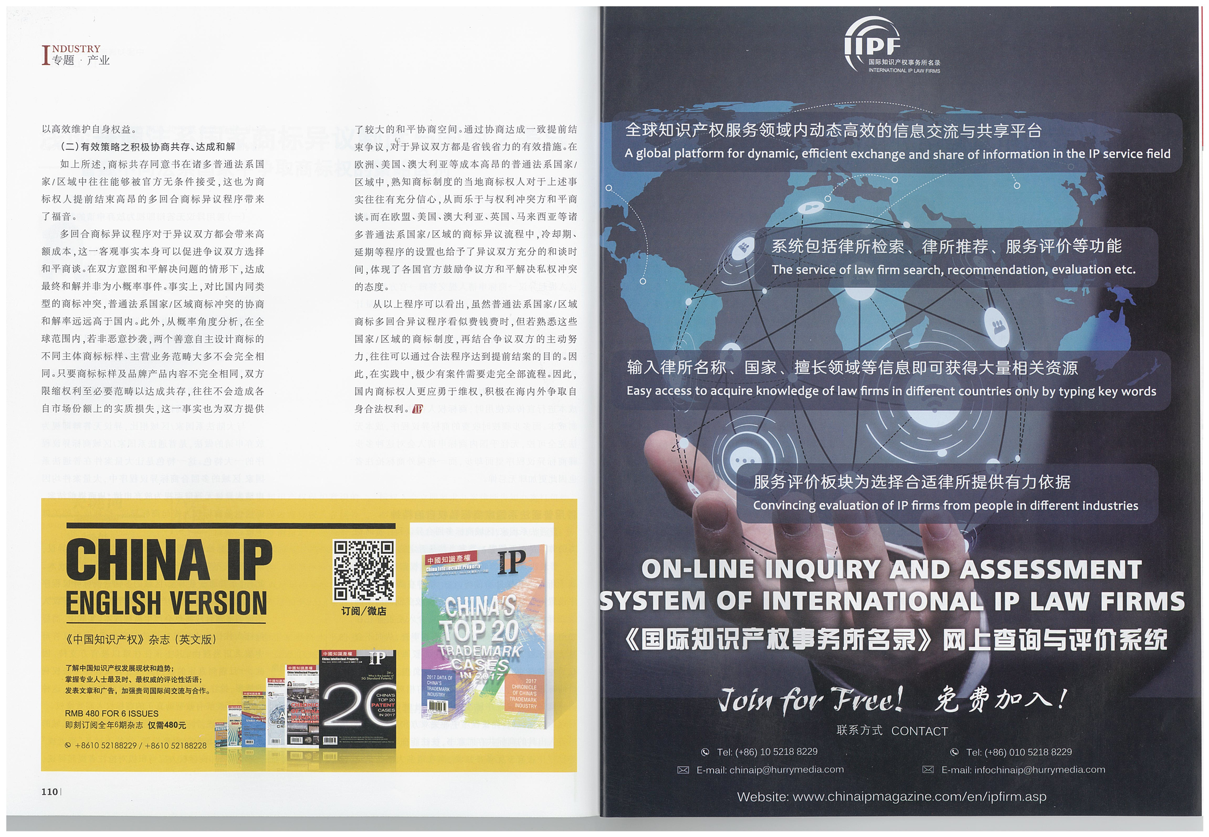 集佳文章《淺談普通法系國家商標異議制度與國內之差異——管窺不同法系國家中爭取商標權的策略區別》在《中國知識產權》發表