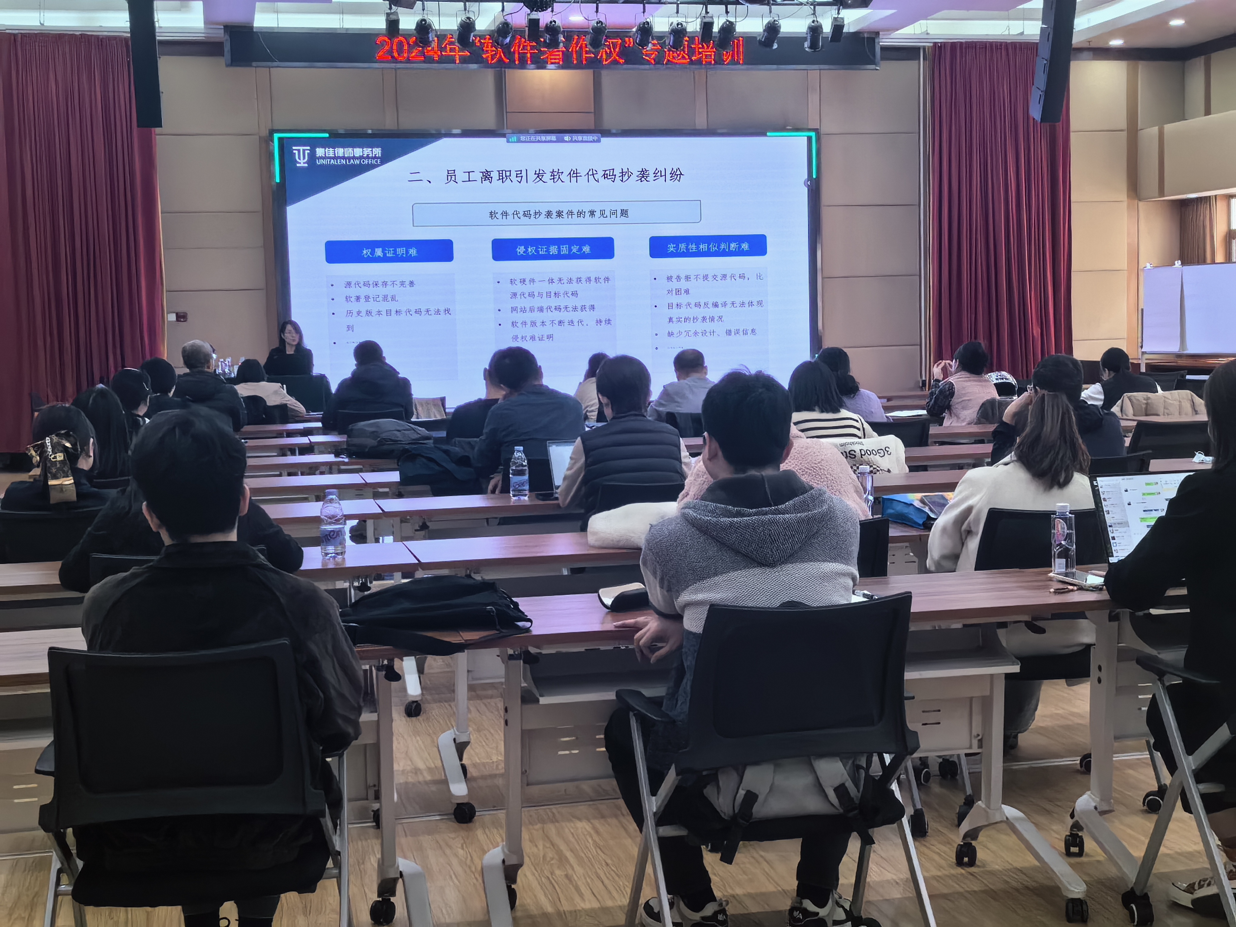近日,集佳合伙人律師周丹丹、律師曹陽應邀為同方威視軟件研發人員提供“2024年軟件著作權專題培訓”。周丹丹律師在鋪墊了軟件著作權保護的條件、軟件著作權糾紛案件類型等相關基本法律知識的基礎上,結合“寶利通訴小魚易連案”等典型案例,對各類型案件中如何舉證及法院認定進行了詳細解讀;進而以案例為引,總結提煉軟件著作權登記的注意事項,源代碼保護及權利軟件使用證據沉淀,軟件開發合同、合作開發合同中涉及權利歸屬約定、開發需求明確、交付等核心條款如何約定,軟件采購及合規使用等方面的實務要點,為研發人員日常工作中可能遇到的軟件相關問題答疑解惑。曹陽律師結合羅盒訴玩友案,分享了開源軟件合規使用相關要點。